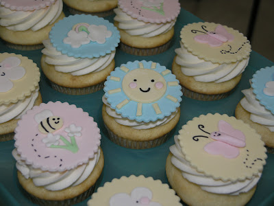 Here are some cupcakes I did for a very sweet lady that is moving away. Her co-workers where having a send off party for her. I got the idea from one of my favorite cupcake ladies, Hello Naomi, and then I mixed it up a little. The cupcakes are white cake with buttercream icing, and then the overlays are made out of fondant. I can create just about anything you like to go on the tops.